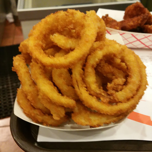 Great burgers and the fries and onion rings are good too. Try the texan burger. The staff are nice and the area is local and quiet with outside seating.