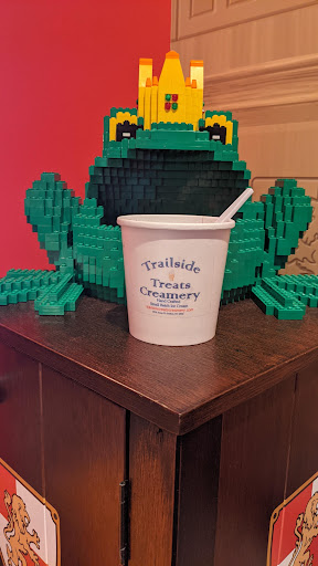 Great location, my son and I now have fun riding the trail then treat ourselves to ice cream. Friendly staff, everyone is always smiling and very polite! Very clean, they have a wonderful seating area on the side of the building. Delicious ice cream (our familys new favorite, Cookie Monster!) and great PRICES!!