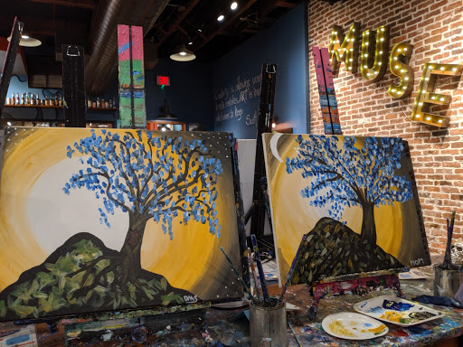 I came here for my birthday with a group of friends and there were other groups there for birthdays and just for fun groups. The atmosphere is nice, the staff is friendly, but while we were painting, one group of people kept blasting music in a language that was unknown to my group and a couple of others. It was absolutely rude and the staff did nothing about it until I said that i am here to paint and be relaxed and this music was not what I expected. The man showing us how to paint said that they were getting out of control and he would turn their music off, which took another 10mins until it went off. The other group was disruptive, they werent listening and we had to continuously tell them again which brush to use and what part of the picture we were up to. It was not relaxing or fun. The paint was awful, it did not stick to the canvas, i had to keep layering which only came out worse. I will never do another paint night, that was my first & my last. Oh and good luck getting your "free drink" the options are limited, the drinks on the wall that dont come with your painting session are actually more enticing. What a waste of my time & money.