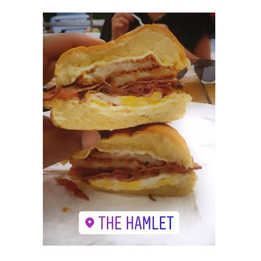 Stopped at the Hamlet for a snack. My wife and I shared a chicken salad (in a plastic container, self serve refrigerator) and crab cakes. Both were delicious, the crab cakes we the size of a very large snowball and delicious serve with chopped pimiento and thousands island. Nice outdoors and casual.