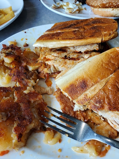 One time I decided to sit and eat on my lunch break they serve me a burnt gyro I ask for another one they would not give it to me. Second time I go in order just a regular like side of mac and cheese and chicken tenders the mac and cheese was served in this ridiculous container it was burned once more and my chicken tenders were about 6 pieces and somehow my bill came up to $21.63 how does that work! The last straw was actually going to pick up something to go an the manager wouldnt even take my order and told me to find a waiter. their waiters are walking aoru6nd and ignoring me and I waited 5 minutes! that wathe last straw and never going to eat there again