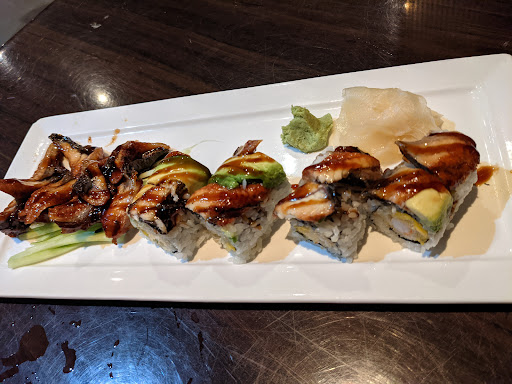 Some very delicious sushi. This might take over as our defacto sushi place. The sauces were delicious and the roll combinations were to die for. The serving size was ample and we ate 3 rolls between the 2 of us. Service was a bit slow mid-meal, but placing an order for a 3rd roll, it was made at at our table quickly. Decor is nice. Red room/Blue room. Dont be thrown by the big flashing sign out front next to the Days Inn sign. Staff was friendly and offered suggestions. We will be back again.