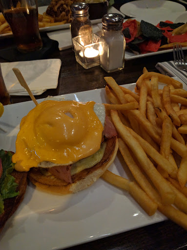 I read about this place on Yelp and was SO ecstatic with my experience! Not only was the service fast (despite a large crowd for a Monday night) but the food was absolutely amazing. We started out with the loaded fries and were not disappointed, it took all of our self control not to eat the entire plate and spoil our appetite for dinner! I ordered the pan seared salmon in mustard sauce and my boyfriend ordered the turkey burger. The portions at first glance appeared small, but about halfway through both of our meals, we were stuffed! We were so happy with our meal, the environment, and the cost of our meal, I would definitely recommend this place to a friend! The environment was a mixture of casual and classy. Some people were just there to watch the game in their sweats, while others were dressed to the 9s. The decor was perfect for either occasion and the music was even pretty good. Overall, it was an enjoyable experience - the only odd part were the bathrooms. The ladies room had two large stalls with ENORMOUS steel doors that were loud and slightly terrifying when they shut (lol) but other than that, everything was perfect!