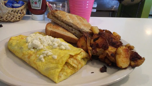 This place has a great hash omelet with American cheese and sausage gravy on the top.
