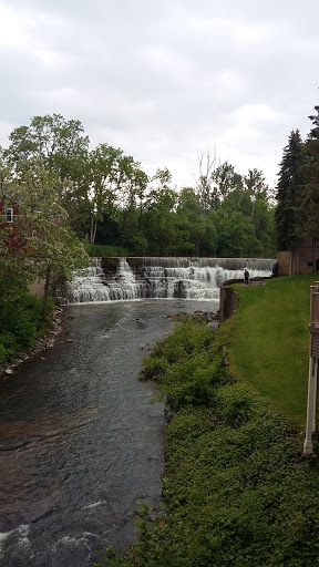 Charming place on the Falls: Brewery is smack-dab on the falls bridge. The falls are in its backyard. Bar is smaller but intimate (good for a quiet date w/ dinner and drinks). The crew is just great and friendly. The waitress is always excellent. The menu is hip and unique. Ive had that vodoo chicken, slightly spicy and delicious. If you are in the neighborhood, stop in. A nice place.
