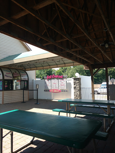 Best one can tell this is "the smoke house" deli and ice cream. Inside looks like a typical deli with a few booths to sit in. Lots of outdoor seating under a large A-frame pavilion. You order inside, so no tipping required! Bonus. Lots of deli meats and hot food like BBQ and German wursts. We tried the Texas brisket, but it was so drenched in BBQ sauce that it could have been tofu. Brisket, if its good, should be eaten unadorned. This was a disappointment. I may come back and try something else. 68,000 soft ice cream flavors. The outdoor seats are typically full of little leaguers and fat people, but less crowded than the dairy barn.