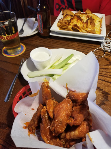 Handshakes has amazing wings. While not known for their wings their specialty sauce (the name has slipped my mind) is delicious. The wait for the food was a little long, although we were a party of 8. If youre in the area Id suggest it.