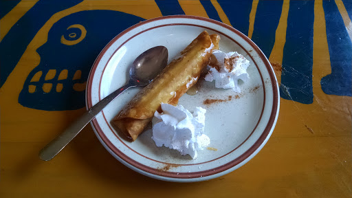 Its amazing. First of all thier salsa and chips are free and theyre soooo good. ¡! The place has walls totaly colored and painted with mexican sumbraros etc. Desert of banana stuffed in this warm crisp roll with syrup and cinnamon and whipt cream:) Prices arent too bad and the guitarist is excellent. Theyre all mexicans who work there lol so its fun!!!