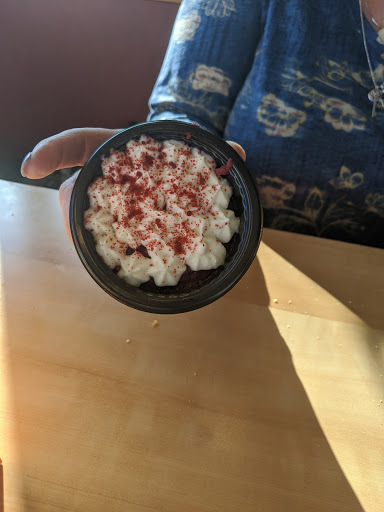 First time here, I was handed a cup to fill my drink with in one of those new Coca-Cola vending machines and selected a vitamin water… As Im pouring a drink I noticed that syrup was splashing out onto my hand, so I grab some napkins and try to wipe myself off, (my hand was still orange after wiping and washing, and in fact it still is three hours later). after I finish my meal I went to dispose of my garbage and noticed that the syrup didnt just spray onto my hand, but had sprayed on my shirt (around my stomach) and ruined it. At first they had no intention to offer any compensation, but later I spoke with Erick the manager and we where able to work out an arrangement.