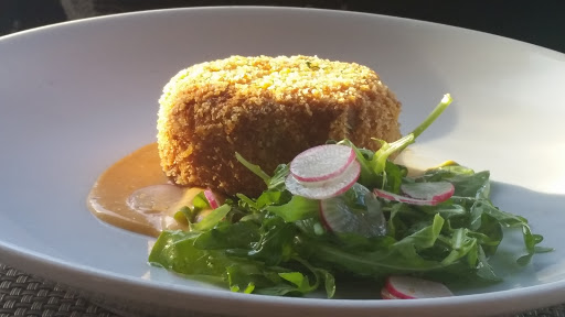 The location is right on long island sound. We sat on the pitch. But the seating was not elevate. Our view of the boats docked in Huntington harbor was strictly eye level only. The music was old rock and roll. Not appealing in my opinion for a restaurant with a price of approx $60 per person. We ordered the kale salad and crab cake appetizer. The kale salad was very fresh - no wilted kale, light balsamic vinaigrette, fresh strawberries, and a light dusting of feta cheese. The crab cake was handicapped by too much salt for my taste. On the other hand, the visual presentation of the crab cake left a lasting impression of a light fry. We followed the appetizers with a "Montauk" sushi roll - a combination of lobster, spicy tuna, a light wrapper of sushi rice and a light yozu mayo icing. The portion was adequate for two people. We also ordered broiled scallops with favs beans. The pronounced taste of the beans complimented the rather flat taste of the scallops. The service was top shelf. The waiter was knowledgeable and comfortable conversing with us. Summary: worth it if you can afford.
