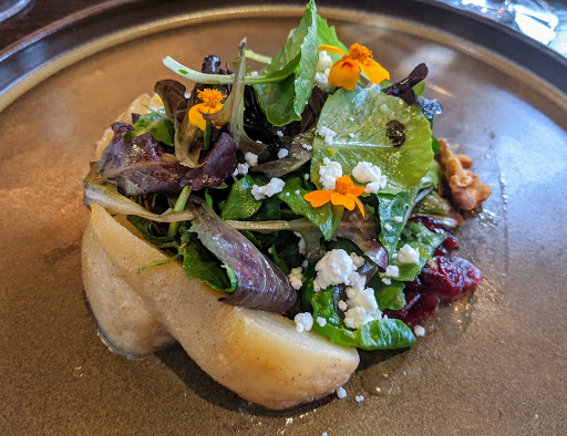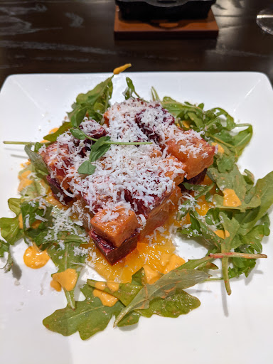 This was terrible. The food was incredibly salty, and it was all salty. Incredibly the salad was salty. My wifes fish was too salty to eat. It was expensive but basically crap. The app was salty. We had to ask three times over a 45 minute period to get a glass of water, in spite of asking every time for sparkling we still wound up with still water. For inedible food and a tiny carafe of wine we wound up paying well over $100. Its not like I went there with an axe to grind, we were super excited and had made reservations a month in advance. We were ready for something great, but it was terrible.