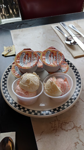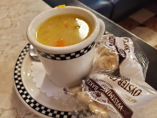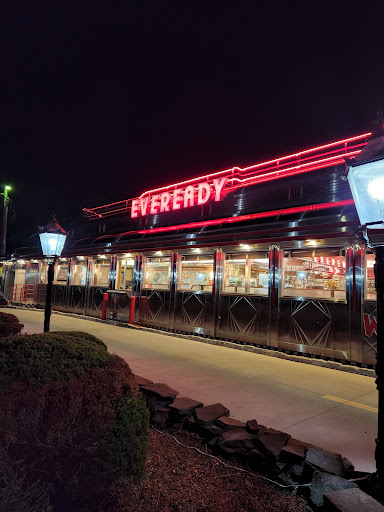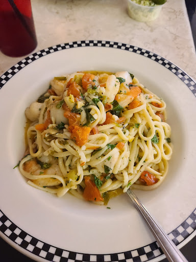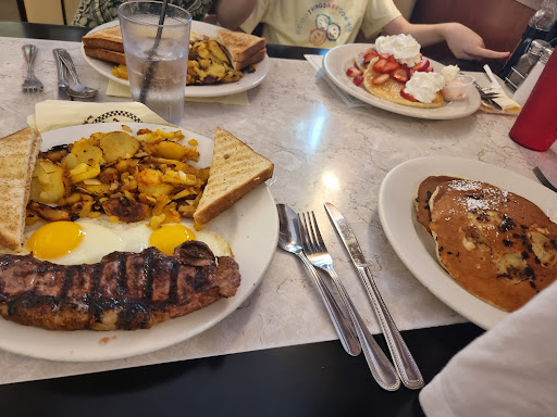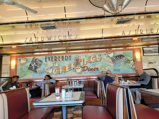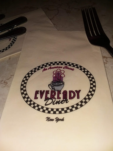 Not sure why this place was on the food network, but I dont think it should have. As soon as we walked into the door, the girl behind the counter took her time to acknowledge us. It was really awkward. In any case, dinged a star for that because that should not happen. I feel that this diner is serviced by college/high school students. I know it was a slow night and the New York Knicks was on, but it was really obvious to see some of the workers watching the game for a few minutes when they could have been attending to their customers. Luckily, it didnt affect our service. This is a TRUE diner in the sense that they offer TONS of food, too many choices to select from. We ordered Chopped Steak and Jambalaya Pasta. The chopped steak came out to something we totally didnt expect. I thought when they printed chopped, it meant cubes of steak not ground up NY Sirloin steak. In any case, that would have been fine but we said medium rare and it came out medium well. My fiance didnt really like it at all, instead she liked my Jambalaya Pasta. If you like spicy food, this is the dish. Has a huge kick to it. They give you 4 shrimps and TONS of chicken. I felt like they gave me more chicken than pasta. It was nice that they let me substitute for Angel hair pasta. Another true thing to this diner, we had so much food that we could not finish our meals and had to take it to go. Dont you just love steak for breakfast!! I would not drive out here specifically for this diner. Any diner Im sure would taste the same, not sure about the portions of the food though. Decor is very diner-ish. Love it. Service was just par. Their mints were good. An interesting thing to see was a donation box for Memorial Sloan Kettering. I took a picture of it =D