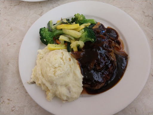 When I entered no body there on the desk,saw one girl sit on the bar stool and i was look around ,by the time girl saw me and offered menu and greeted.then i was sited and waiter came to ask drinks. I order hinecken,waiter brings bottle and glass when he placed the glass i saw it is tooo dirty,i mean it realy realy dirty it never wiped had lot of stains and water in it.so i drink it by bottle.then i ordered NY sirloin steak medium..foood came after while not late but it was welldone.and no sauce as mentioned in the menu.vegetables were wilted i thought it may stayed long time on bain marie..and mashed potato had no creamy or butter taste just plain.also bread and butter where they mention in the menu with main course never came.just a soup i requested.waiter is fairly ok but uniform was dirty with stain marks.i observe others too they look same too.it was around 9.30pm 24th july.may be they had long shift but i was not happy customer.i may give much better rating for Rhinebeck diner they do much better than this.hope they mey outcome some of there mistakes then it will b nice place to go.