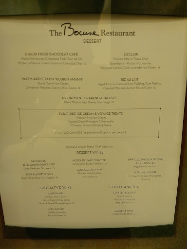 Went to Bocuse on Jan 22,2016 to celebrate my birthday. This is our 3 trip to the CIA. Was sorely disappointed. Service was very slow and food came out cold and had to be sent back. I understand that they are students in training - but was very very disappointed.