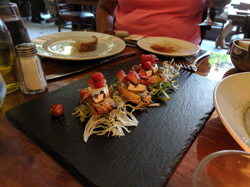 Very slow service, food was decent but way over priced. $19 for a salad the size of a side salad with paper thin chicken. Acoustics were horrible, very very loud.