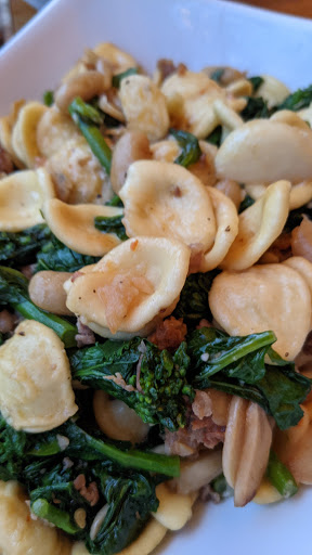 We got there a little after 7:30 on a Saturday night with no reservation and got a table instantly. We got the rigatoni with lamb Bolognese and the pasta the special. Both were good, although the pasta special was a little salty, although maybe that was due to the sausage. The rigatoni was cooked perfectly. For dessert we had Tiramisu which was good and not watery or too sweet!