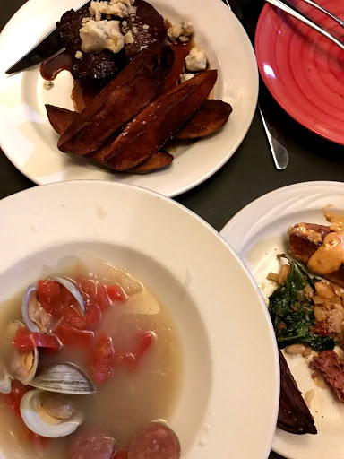 Everything was amazing. We sat outside on their back patio on a Sunday night, which was off the street and adorable. I had a flight of Italian wines (all were delicious, and all five of the tastings were generously poured), and then we shared a bunch of tapas for dinner. Everything was absolutely delicious, service was on point (it was obvious that they all worked as a team, which makes for excellent service). Of all the tapas we shared, the buffalo mushroom meatballs were probably my favorite. Dessert was to die for. I had the chocolate souffle, and it was one of the best ones Ive ever had. I highly recommend this place.