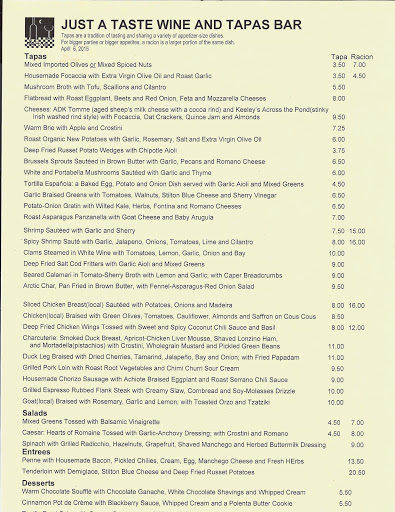 Just a Taste is a real gem. The seating is small and a little cramped, but its cozy if you dont absolutely hate being close to people. Definitely a great place to go with friends as it is tapas! Ive been told the crab cakes are killer, but there is also a great selection for the vegetarians like myself (their Brussels sprouts? Yes!!). The staff is usually friendly, I had one waitstaff who was a little rude for no reason. Came here for my birthday last year and the bread pudding was perfect, they even gave me a candle! Ive always had my moneys worth in quality. For some it may not match quantity, but I find 2-3 dishes per person makes a filling me. Definitely a spot I recommend.