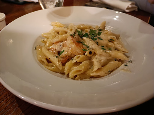 A very upscale sit-down restaurant. Very unfortunately, they dont serve anything other than bread with an entree, so if you want a soup or salad, its going to cost a few extra bucks. However, the dip they have with the bread is great! As noted, the food is very good. The Ahi tuna was extremely tender and well-cooked, but didnt have quite enough flavor to it. The lobster bisque was very tasty on the other hand. Of course, once they show you the desserts, its impossible to refuse not to have one (the cannolis are amazing!). I thought that the decoration was very nice, a little dark, but still nice. Service was okay; it could definitely have been faster considering how few people were there, but it wasnt abysmal.
