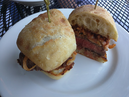 Not a family place. Tried to order sandwich for a hungry toddler. Asked for a chicken cherry sandwich without mayo, the waiter seemed to listen, did not bother to explain that the sandwich is the premade chicken salad on a bun, could not be done without mayo. Asked for something without mayo and not burned, no black marks. Waited for a long time, maybe seemed like it because the kid was hungry. The sandwich was served finally, chicken was completely burned, black on both sides, paid for everything, left the sandwich, went to look for another alternative to feed the kid. Horrible, regret the tip, regret going there.