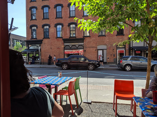 After being seated we waited a full 15 min at a table before being greeted or even given water- had to ultimately go inside and find someone myself. Very frustrating as we had just come from a hike and were very hungry and thirsty. Service after that was fine, nothing special. The food is... not good. "Steak Fajitas" were actually some type of compressed meat product, imagine a gyro slice for example. Guacamole was almost liquid, like it had been blended, not chunky. The michelada was very confused, had lime juice but no spice or savory seasonings in the bottom at all. Dumped some hot sauce in and that sort of helped. The saving grace is basically a) sitting outside in the center of Ithaca drinking beers and people watching is really nice and b) the price is right. Place is pretty cheap. If this were not the case I would see very little reason to go here. I would possibly consider coming back with lowered expectations and trying again.