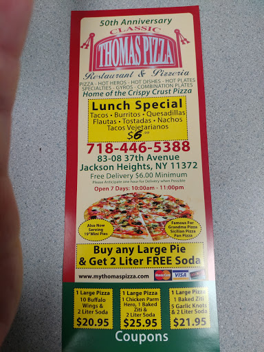 Thomas pizza has friendly staff and great service. The pizza is good, nothing extraordinary but its delicious and satisfying.