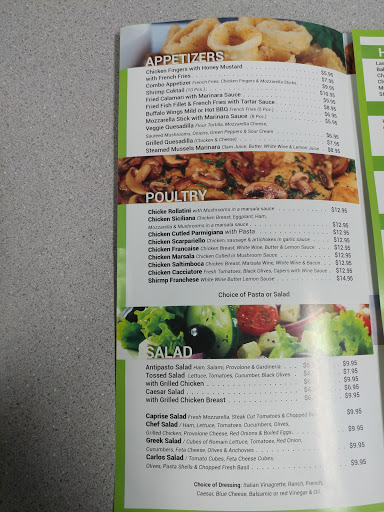 Had a 10" personal cheese pizza, which is a great value at around 5 bucks. The 4 visually appealing slices were enough to fill me up. Taste was pretty good, no surprises or frills, just a well-balanced cheese pie.