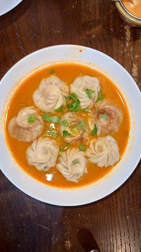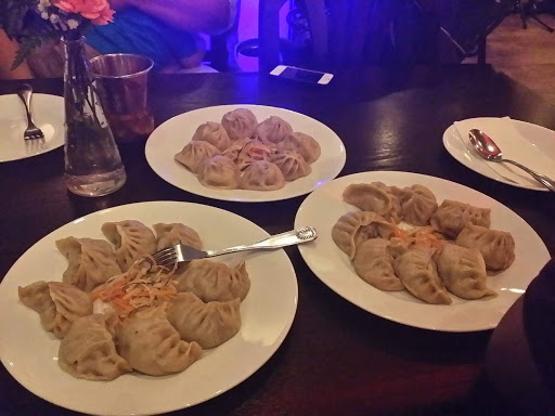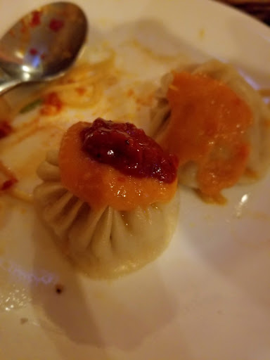 We only stopped in for a snack, so we ordered a few dishes. We hoped for the Yak Momo, as thats what theyre known for, but--probably because yak is imported--they were out of yak. The waitress recommended the Chicken Sha- Momo, steamed. They were served in a bamboo steamer, beautifully formed dumplings. However, the dumpling skin was too thick and slightly tough, the filling had minimal flavor other than ginger. We were unimpressed compared to other momo weve had. We also had the Sha- Bhaley, again beautifully formed, a pastry filled with ground beef. The dough was ok, pretty thick and well fried (not too oily), but the filling was flavorless. Fortunately the table had a typical assortment of sauces. The Avocado & Vinegar (green) sauce was our favorite, a fantastic sauce. The Tomato & Sesame (red) sauce was pretty tasty as well, but not interesting. We found the pastry was a bit better when we opened them and added salt, they were just dramatically underseasoned. Finally, we also opted for the Gyuma, a beef blood sausage. While not everyone loves blood sausage, we do and have eaten our fare share. This was not terrible, but non-notable. The skin was tough and we had to spit it out. The inside was tender and had a nice flavor. All-in-all we found the restaurant much cleaner than the average in the neighborhood, the service was attentive and friendly (although it was fairly empty when we went). The price was a bit high, but the portions were large. We wont be back, especially knowing better Nepalese options on the same block.