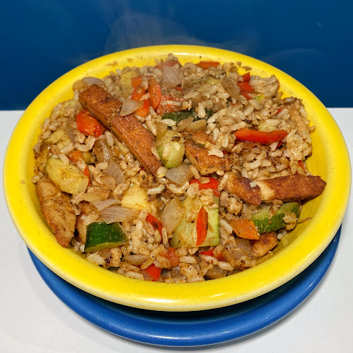 Its great to see that the Smile is open again. I have been coming here since I was a kid and it brings back fond memories. The place is run by students of a Guru who lived in Queens which explains the interesting photos and artwork. The food is all vegetarian and is a great addition to the limited veggie food choices in Jamaica. Im a big fan of the steak burger and the juices.