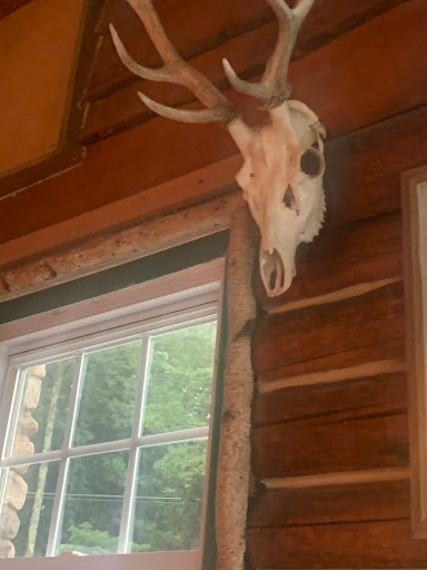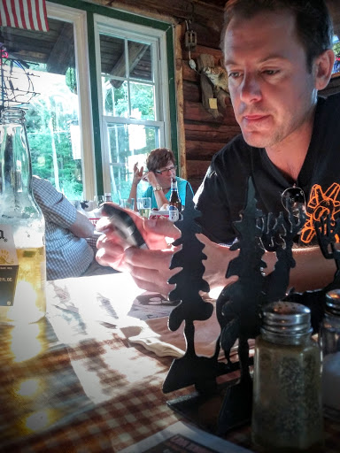 Rustic log cabin out in the middle of nowhere. They know how to fry up food!