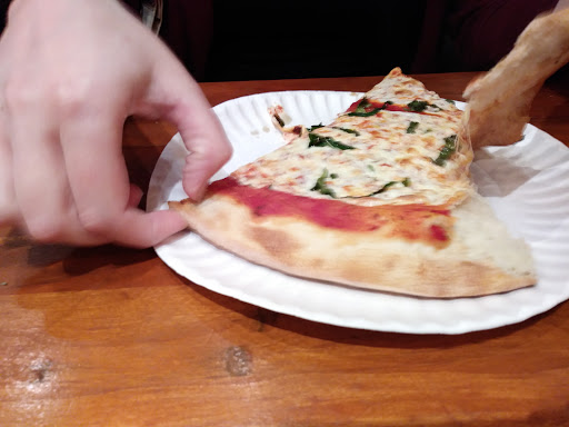 The slices are incredibly packed with flavor and toppings. Very reasonably priced for a slice that has so many toppings that they fall off constantly (in my opinion a good thing). Food is very tasty and staff is attentive and kind. Restaurant is kept very clean and bathrooms are too. This has become my new pizza spot.