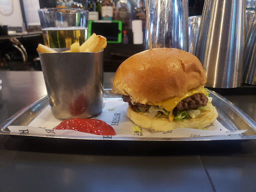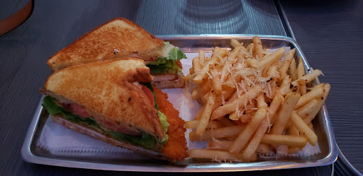 Great place for drinks, bar food and serious sports watching. Great crowd (especially when the flight attendants come home on their off-days). Al fresco café service is available when the weather is nice, and is well inset from the pedestrian sidewalk. If youre not on a diet, do the chicken strips and enjoy a big bacon Swiss burger with curly fries. If you ARE on a diet, do the chicken strips and bacon Swiss burger with curly fries!