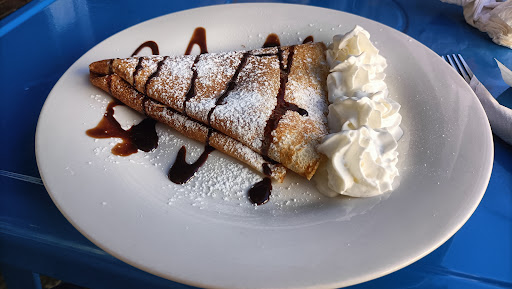I usually get share the gyro plate with whoever I go with and then we each get a sweet crepe. The foods great. Its not too loud or busy, and the service is alright.