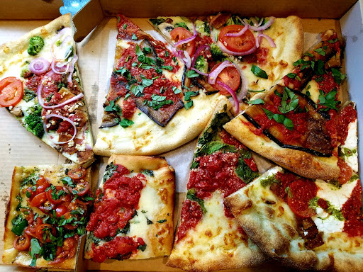 Cant believe the poor reviews. There are 3 excellent pizzerias in this area. Picnic is at the top of that list! Their slices are incredible- yeah it looks a little cheesy inside the restaurant but the pizza is so good, try the eggplant specialty slice or any of the chicken slices. Try it again if youve had a bad experience.