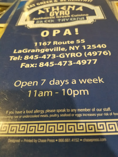 SERVICE AND FOOD WAS EXCELLENT! OWNERS ARE AN ACTIVE PART OF OPERATIONS! THEY WALK AROUND TO EACH TABLE ASK CUSTOMERS HOW THINGS ARE! I HAVE YET TO GET SLOW SERVICE, BAD FOOD OR ORDERS!! THE PORTIONS ARE EQUAL TO THE PRICE! WE LOVE ATHENA GYRO AND WILL BE COMING BACK!