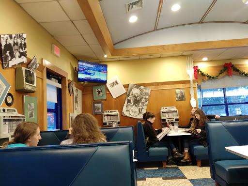 The atmosphere is so cute here! Each area of the diner is a different decade and decorations as well as tv shows they play. The food is a generous size like many diners and really good. the quality of service along with food makes this a great choice to eat any meal! I cant wait to wear my t-shirt to this place and enjoy it!