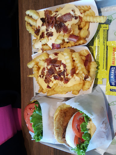 Shake Shack...was going to the movies with the wife and had time to grab a bite to eat. Wandering around we came across this place. Figured wed give it a try. Clean place...high end prices for a burger so i figured we would be paying for a great burger or some heck of an experience. Got disappointed on both ends. Wifey ordered a chicken shack...which was soooo salty. My burger had less meat than McDonalds. Fries were...eh...but overall disappointed. Gonna end stopping at another spot after the movie. Wasnt worth it at all.