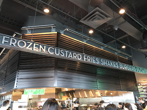 I was excited to try this place as I never had shake shack before. Since this recently opened it was packed when my family arrived, but it only took about 5 minutes to make it to the front of the line. The staff there seemed a combination of friendly and exhausted, greeted us without a semblance of a smile, but did joke around with us. The wait for our food/shakes was about 10 minutes after that, not a bad wait time (especially with all the people). The burgers were good, flat patty to allow quicker cooking, condiments complimented the burger, fries came out nice and crispy on the outside while soft inside. The shakes were also good as we tried a variety among out group, all milk shakes. Though the experience overall was positive, i do think the burgers at five guys are better, and the fries at shake shack lack any distinct flavor that the seasoning at five guys provides. Even though some five guys locations offer milk shakes, shake shack has a better variety (though not on par with most icecream places). This is a good location for burger and shakes, but has close competition from five guys.