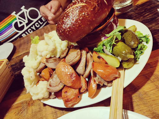 Food used to be really great very tasty, just like german home cooking. Something must have changed with the cooking. It is not the same anymore. The Jägerschnitzel is now served with a white mushroom sauce, that is not The real sauce for that, it is a brown mushroom sauce. And the Goulash is over spiced, served with red cabbage and sauerkraut on the same plate?!? That is absolutely not authentic!! If you want to mix up the goulash, throw some mushroom s, red and green peppers in it ! Otherwise the place is lovely! Liked it a lot better a year ago !!