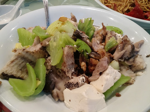 Food tastes okay but service is mediocre. We have a party of 8 so we ordered 2 roasted pigeons. When it came in, each of us got a piece of pigeon. Then one of the waiters came in and took the plate out before we get the fired shrimp crackers. We had to make a complain and another waitress got a another dish of fired shrimp crackers.