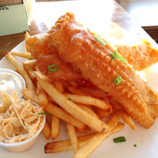 Fish tacos have a huge fillet of juicy white fish! Theyre super filling for $5. Staff is friendly. Happy hour is a bit odd. Its buy two get a third on drinks, so if youre a light weight like me...its normal price.