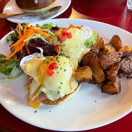 We went for brunch, because friend recommended it, on a busy sunday, but we only wait 15 min for a table for 2. We order the coffee which is good plus the eggs Benedict, I loved the Hollander sauce, the potatoes and the salad, plus $2 you can order the salmon version. But my boyfriend was disappointed with half cooked egg (yeah, even for an eggs benedict uncooked original) and the salad. The service was fast and gentle. Plus, the prices are really good and the ambience-music sound is very relaxing and charming.