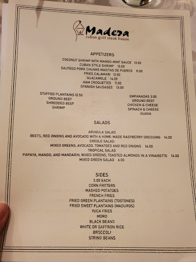 Great atmosphere,everything we have ever tried was delicious; Cuban sandwich,ropa vieja, ground beef stew, chicken Madera, mahi mahi and especially chicken soup. The dessert is good and the drinks are amazing! We wish it was a little less expensive so we could go more often but it's fine for special occasions, also yuca fries are great and my favorite is the skirt steak