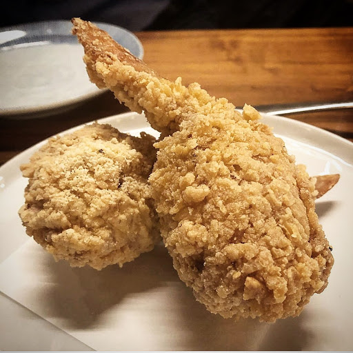 We started off with the drumsticks with foie gras. The skin was crispy and the chicken was moist, with the foie gras having kind of a stuffing texture it was like a fried portion of thanksgiving. At 16 dollars for two drumsticks it was pricey but then again, getting quality ingredients is always a plus.