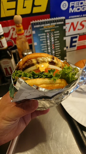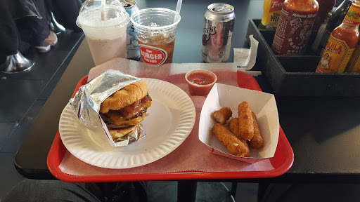 This is a pretty solid burger and milkshake place. The burgers are delicious and you can put anything on them. They also have a bunch of other awesomely decadent fried foods, like chili dogs and grilled cheeses and a options for piles of fried things. The milkshakes are pretty great, I have had the peanut butter one and mint chocolate chip. They also serve beer. The atmosphere is what you would expect for a place like this, with kind of a car/nascar theme I think. I dont like the atmosphere at all, but it doesnt make much difference for a place like this. Also, they have a TV which plays sports.