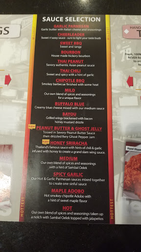 Lots of unique wing sauces!!!! I had the Bayuo and Honey Sriracha. Heather our waitress was spunky.