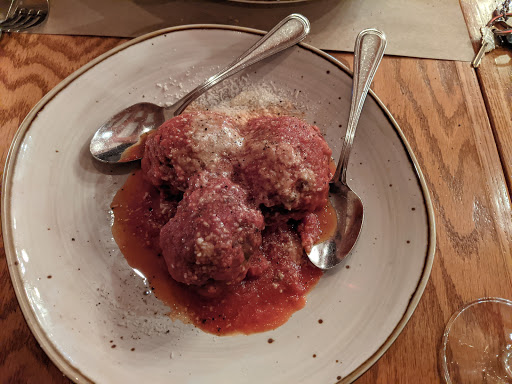 This is a happy place. There is a great inexpensive wine selection along with good bourbons and whiskeys and of course, eggplant "meat"balls. Theres a dinning room but grab a bar seat or at the large communal table and shoot the poop with new friends while eating a tasty meatball or eggplant ball or whatever they are serving. Loads of fun off the beaten path!