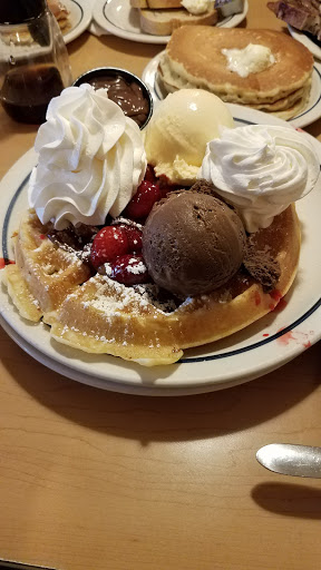 I love IHOP. Great family place and full menu, something for everyone. This visit we tried the red velvet pancakes. They were very sweet as I figured. Lucky I didnt do a stack, just two. My kids love the rooty Jr kids menu where you choose what meat and toppings you like besides your egg. And they serve Kraft macaroni and cheese if youre not wanting breakfast. Lol My favorite breakfast is the meat lovers omelet and side of hash browns, the skinny fried potato shreds. I also like their patty shaped hash browns as well. I love potatoes what can I say. My hubby likes that this place is economical and great menu selections. Only thing is the long wait times. But it moves pretty quickly if you dont go at a bad time. Try to get there before noon. The other thing worth mentioning is their soups and bottomless coffee. They have a few soup choices ... NE Clam Chowder, cheesey tomato soup, loaded potato soup with bacon and cheese, french onion, ie. We would go back any time!