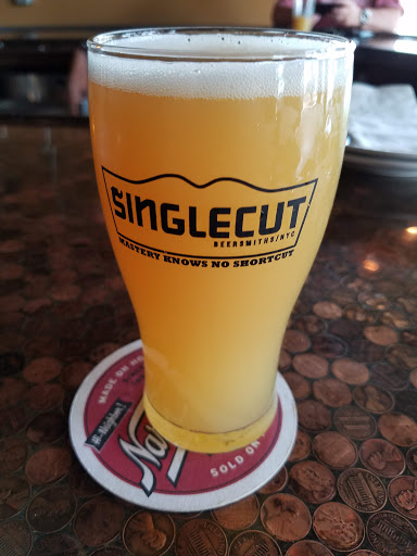 Great pizza and beer. Unfortunately, this evening the waiters at the table behind us spilled beer and wine that splashed onto our table, covered the back of my coat and soaked part of my shirt. The worst part? No apology from staff or management. They didnt clean up the areas near us. I had to ask for a cloth to wipe down my coat and the cloth smelled worse than the spills. I wiped down the spills on our table and adjacent wall. Again, no offer to help from staff. They did comp one beer. Big deal! No offer to clean my clothes. The waitress seemed to avoid our table after the accident. Im so disappointed since we do frequent this restaurant.