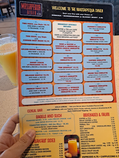 Your standard Long Island diner in appearance. Service was fine, but the food was sub par. They start out strange, instead of bread for the table they serve a cold pasta salad. The pasta salad is essentially a small bowl of penne with bit of thousand island dressing on top. Odd and not all that good. I ordered from the pasta prix fix menu and it was just OK (bland and flat) but the included salad had browned lettuce in it. My kids were fine with the matzo ball soup (best cooked thing we ate!). My older sons burger was way overcooked and my younger sons pizza (from frozen) was way undercooked. Neither liked it much. The fries were fine. I picked a chocolate mousse tart for my included with meal dessert. It looked fine, but was completely flavorless and almost plastic like in texture. I dont expect much from a Diner, yet this one way underwhelmed me. You only get one first impression and this one was bad. We wont be going back...,.